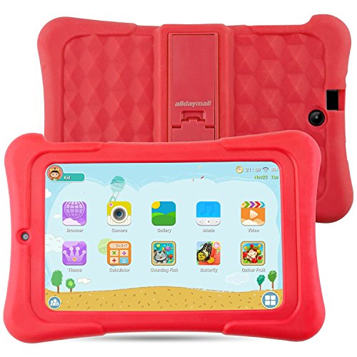 Alldaymall Tablette tactile enfant 16 Go, 7" IPS FHD 1920x1200 (64-Bit Quad Core, Android 5.1, Wi-Fi, avec étui silicone Rouge) 2017 Nouveau modèle Kids Tablet